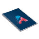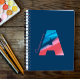 Notebook with monogram. Colourful letter A on blue backgroud.