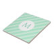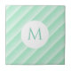 Trendy Mint Green Stripes Monogram Modern Template Ceramic Tile