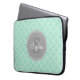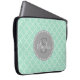 Trendy Mint Trellis Pattern Grey Monogram Laptop Sleeve