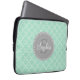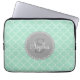 Trendy Mint Trellis Pattern Grey Monogram Laptop Sleeve