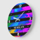 Trendy Modern Abstract, Black Lines, White Name Large Clock