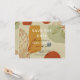 Trendy abstract save the date announcement card. Perfect for a modern wedding. Line protea flower and colourful shapes illustration on paper texture background. Red, yellow and green colours. Botanical minimalist style. Personalise with your names, date and address.