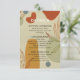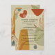 Trendy abstract details enclosure card. Perfect for a modern wedding. Line protea flower and colourful shapes illustration on paper texture background. Red, yellow and green colours. Botanical minimalist style. Personalise with your text.