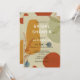 Trendy and modern bridal shower invitation. Line protea flower and colourful shapes illustration on paper texture background. Red, yellow and green colours. Abstract minimalist style. Personalise with your name, date, location and address.