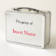 This is a standard metal lunchbox that appears to work just fine. We designed this box ourselves with an uploaded photo and custom text on the front and back. It looks absolutely beautiful except the front of the lunchbox is not centered like it shows in the photo. The print borders don't align with the inset flat part of the box where the preview photo online showed it perfectly centered in there. The back looks nice and centered though.