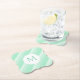 Trendy Modern Monogram Template Mint Green Stripes Bracket Paper Coaster.