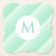 Trendy Modern Monogram Template Mint Green Stripes Paper Coaster