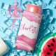 Trendy Modern Pink Agate Gold Glitter Personalised Seltzer Can Cooler