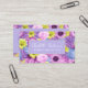 Trendy Modern Purple Floral Botanical QR Code Personalised Name Corporate Business Cards features a pink, purple, blue and yellow floral background with your name and company or designation on the front. On the reverse is your tagline or additional text, personalised contact details and your custom QR code. Perfect to promote your small business. Designed by © Evco Studio www.zazzle.com/store/evcostudio
