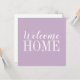 Trendy, minimalist, modern, simple, pastel pruple, welcome home note card.
