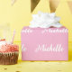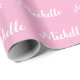 Trendy Modern Script Custom Name Pink and White Wrapping Paper