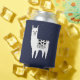 Start some llama drama with this awesome can cooler! It's trendy and cute sketchy style llama drawing is in bold black and white over a dark navy with white swiss dots!