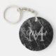 Trendy Monogram Elegant Black Marble Template Key Ring