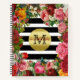 Trendy Monogram Stripes Roses Flowers Gold Glitter Notebook