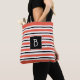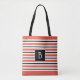 Trendy Monogrammed Orange Red Black & White Stripe Tote Bag