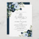 Celebrate your love story in timeless elegance with this navy and light blue wedding invitation. This invitation features a minimalist design with a sophisticated typography script. Easily personalise this wedding invitation with your details and colours.