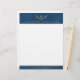 Trendy Navy Blue & Gold Foil Monogram Wreath Custom Letterhead