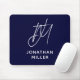 This modern and minimalist mouse pad features a customizable script monogram on a clean navy blue background. The sleek design adds a touch of sophistication to any workspace. The high-quality, non-slip base provides a sturdy and comfortable surface for your mouse. Personalize with your own initials for a truly unique accessory.