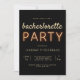 A stylish bachelorette party invitation with neon lights font on a black background. Personalise with your details .