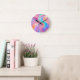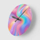 Trendy neon Pink Blue green abstract waves Round Clock