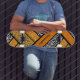 A trendy personalised animal print skateboard with orange African animal patterns including zebra, leopard, jaguar, and giraffe jungle patterns. This stylish jungle animal print case can be personalised by adding your name.