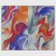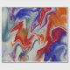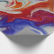 A trendy marbling design in blue and orange with touches of red
