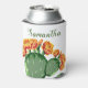 Chill out this summer and keep your drinks cool with this trendy bohemian prickly pear cactus print can cooler. The prickly pear cactus design features vibrant orange and yellow cactus flowers and your personalised name in green script. It's the perfect gift for yourself or a friend who loves cactus!