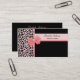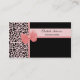 A modern and trendy peachy pink and black leopard print wedding planner business card with a cute, girly ribbon tied into an elegant bow. A fashionable animal pattern design to advertise your services as a certified wedding coordinator. Flat printed image, not actual bow.