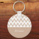 Trendy Pencil Tan Chevron Zigzags With Name Key Ring