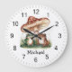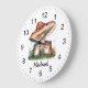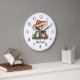 Trendy Personalised Cute Happy Frog and Mushrooms Large Clock