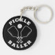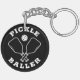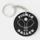 Trendy pickleball keychain featuring a custom "PICKLE BALLER" logo of two paddles and a ball bounded by the header phrase. Fun pickleball gift idea that's great for birthdays, Mother's Day, Father's Day, anniversary, any day really! Available in a curated selection of energetic modern colours.