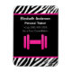 A modern and trendy zebra print personal trainer magnetic business card with a bright pink dumbbell weight. Personalise this exercise and fitness coach design by adding the name of the certified fitness coach.
