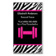 A modern and trendy zebra print personal trainer magnetic business card with a bright pink dumbbell weight. Personalise this exercise and fitness coach design by adding the name of the certified fitness coach.