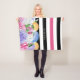 A trendy pink and black floral and stripes fleece blanket decorated with a colourful array of pretty flowers and wide horizontal stripes. You will be sure to capture attention when you personalise this trendy and cute design by adding your name. Available in three comfortable sizes.