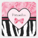 Trendy Pink And Black Zebra Pattern With Name Square Sticker