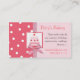 Stylish custom bakery business card done with graphics of a pretty pink cake, in the middle of a pink and a salmon and white polka dot backgrounds. Perfect for a bakery shop, party shop, or an independent custom baker. Customise the text fields to personalise for yourself or your shop.