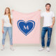 Trendy Pink Blue Heart Monogram Valentine`s Fleece Blanket