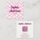 Stand out with this fun and trendy square business card featuring a pink wavy chequerboard pattern and bold script name. The playful yet stylish design makes networking memorable and helps your brand feel modern and friendly. The back of the card includes a customisable QR code, allowing clients to instantly access your website, booking link, portfolio, or social media with one quick scan.