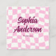 Trendy Pink Chequerboard with QR Code Square Business Card