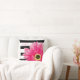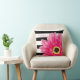 Trendy Pink Daisy Black and White Stripes and Name Cushion