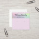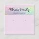 Trendy Pink Holographic Earring Display Square Business Card. A chic minimalist design with adjustable earring hole elements, and optional text. Personalise the front of the card with your custom name and title. The reverse side with your business contact details. Further editing option on the product page.