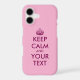 Custom pink Keep Calm and Carry On iPhone Case. Create your own funny Keep calm and carry on parody. Customize background colors and text the way you want it. Trendy smartphone covers with crown.