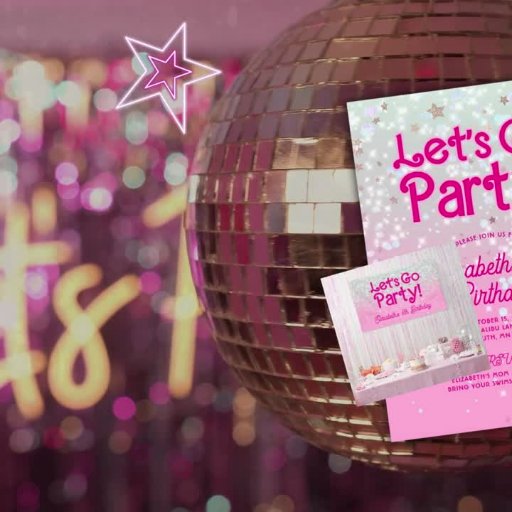Trendy Pink Let's Go Party birthday invitation. Personalise with your own details!