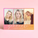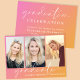 Trendy graduation party invitation featuring a pink to orange gradient background, three photos of the grad, "graduate" in a chic white script and her name and class year in simple modern white typography. Add your party details on the back.
