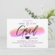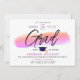 Trendy Pink Purple Grad Cap Bold Script Watercolor Invitation