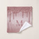 Trendy Pink Rose Gold Glitter Sparkle Drips Bath Towel Set featuring your custom name and monogram on a background of girly faux glitter drips. Perfect for your glitter aesthetic.