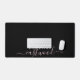An elegant modern trendy style monogrammed desk mat with a sans serif first name and an elegant pink script last name. For home or office.
