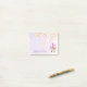 Standard sized sticky notes for an event, such as a birthday or baby shower. Designed with a trendy pink unicorn. Adorned with a fancy floral headpiece. Whimsical butterflies flying around. Fake gold confetti sprinkled along the top. A pale purple and yellow watercolor background.