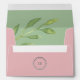 Make a lasting impression with these chic and unique green and pink wedding envelopes. Featuring a modern botanical design with trendy watercolor foliage inside, a silver monogram with the couple's initials, and a return address on the top flap, these elegant envelopes are the perfect blend of sophistication and style for your special day.