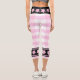 Trendy Pink White Chequered Pattern With Flowers Capri Leggings